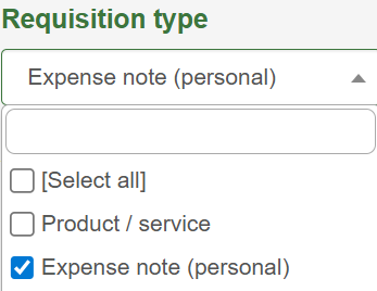 ⭐ Tip: If you would like to see all the requisitions that are reimbursements, you can click the funnel symbol to expand the filter options and apply the correct selection to the Requisition type filter.