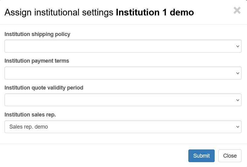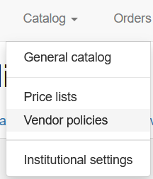 To assign a new vendor policy to an institution (shipping policy / payment terms / quote validity period), you should first create it by following the steps on Add a new vendor policy