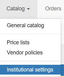 1) Go Catalog > Institutional settings to apply the desired policies to the respective institution.