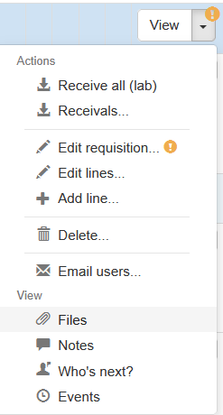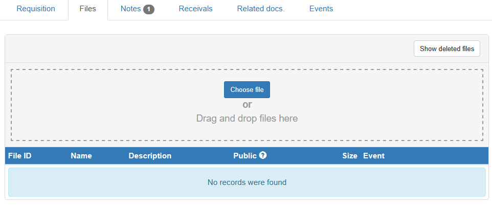 3) If you want to attach a quotation to the request, you can click the Files option in the requisition actions menu and drag and drop the file to the appropriate area.